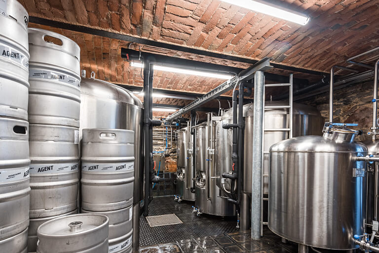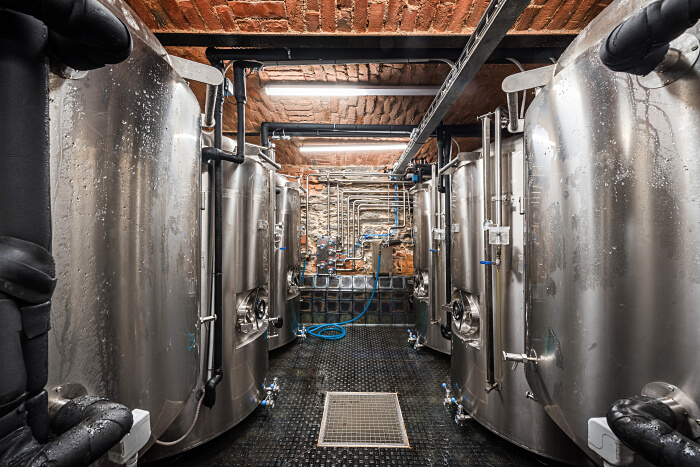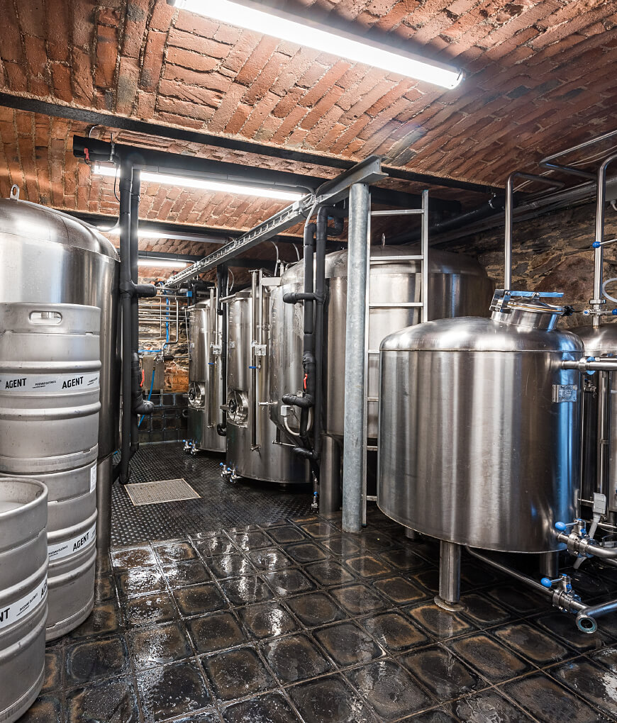 Máme dva ležácké sklepy umístěné v původním historickém sklepě objektu, s celkem 4 ks CK tanků a 10 ležáckých tanků. Všechny tanky jsou vybaveny chladícími duplikátory a tak chlazení piva probíhá pro každý tank samostatně.
